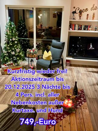 Dezemberspecial - jetzt buchen! 3 Nächte zum Preis von 749,00 € incl. aller Nebenkosten (außer Kurtaxe und ggf. Hund). Verlängerungsnacht je 129,00 €. Jetzt den perfekten Erzgebirgs-Weihnachts-Rückzugsort sichern!